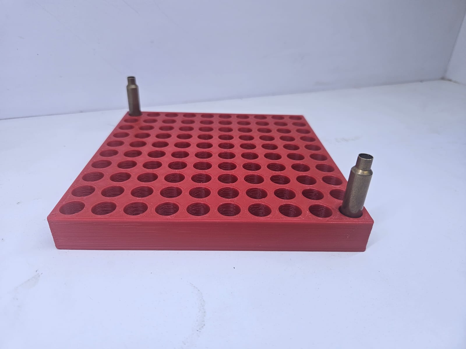 This is a reloading block for reloading 223. It has capacity to reload 100 rounds on a time. The hole diameter is 11.5mm and is 15mm deep.